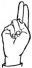 На ћирилици написано МИЛУТИН ПАВКОВ састоји се из 13 слова [?]. Исписано ћириличном једноручном азбуком за глувонеме: